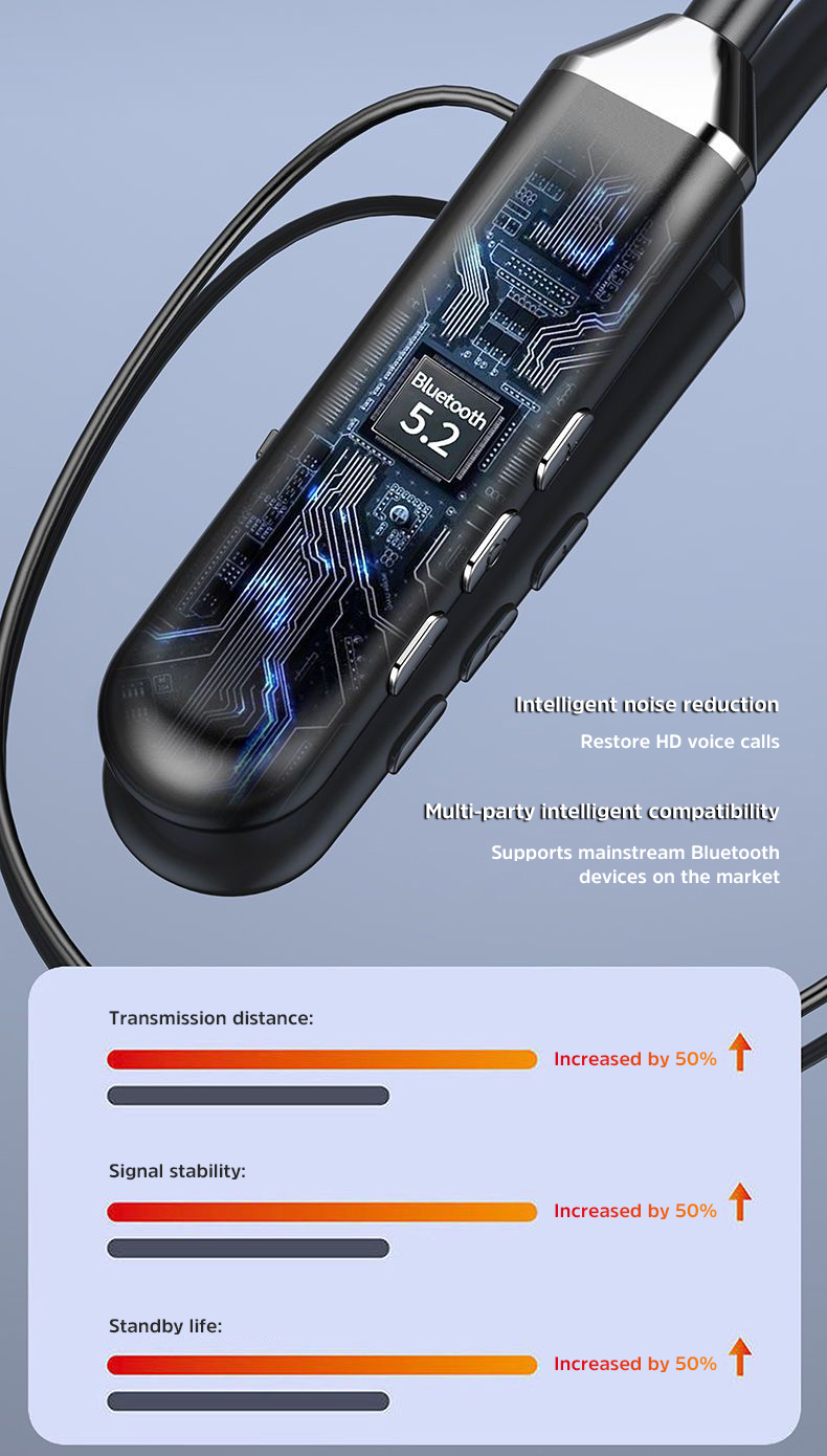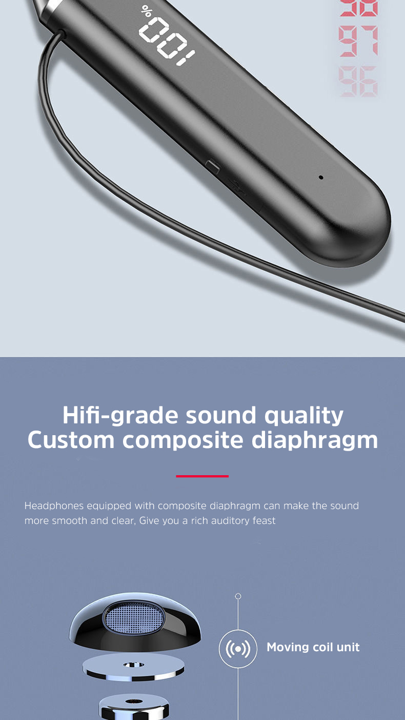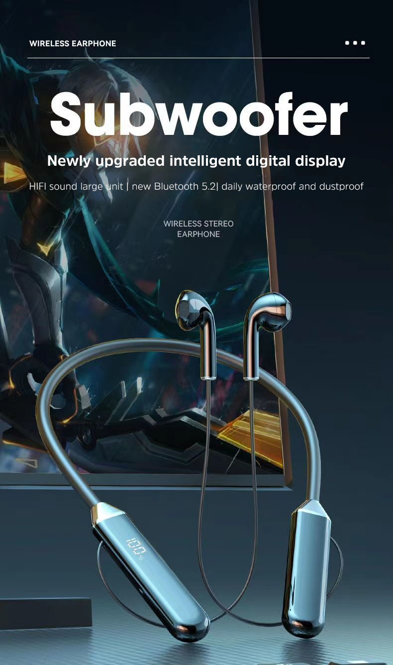 5.3 Wireless Bluetooth Neckband Headphones – Dubbed Heavy Bass Stereo Surround Hlsten Sound, Karaoke Ear Monitor, Crystal Digital Display, 50-Hour Battery Life, Lag-free Gaming, HD Call Noise Cancellation