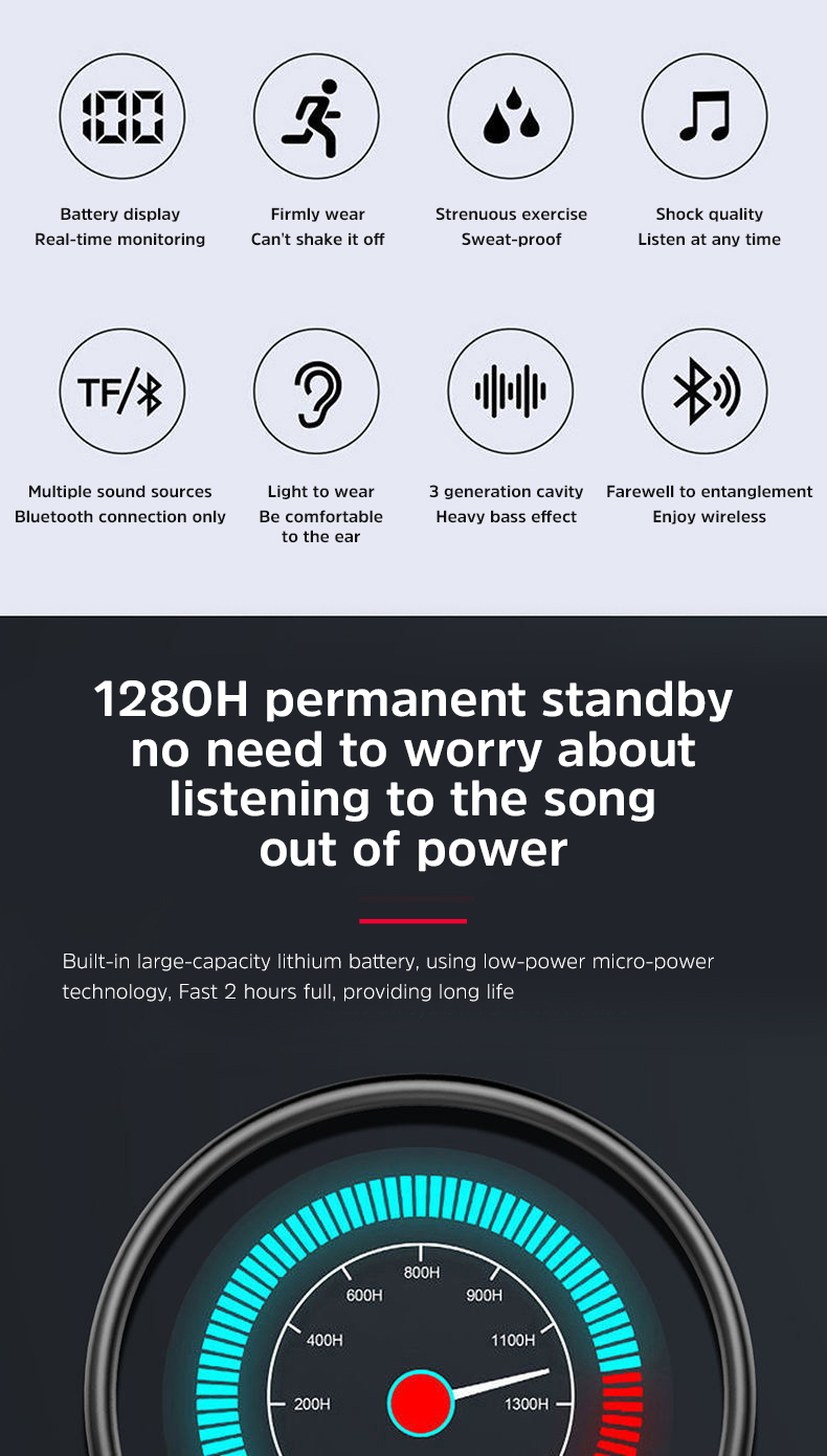 Neck-Hanging In-Ear Bluetooth 5.4 Sports Headphones-1280hour Ultra-Long Standby, 360°ACS Panoramic Sound, Karaoke Ear-Return, Sweat – and-Water Resistant, Memory Card Support, LED Battery Display, Compatible with All Mobile Phones